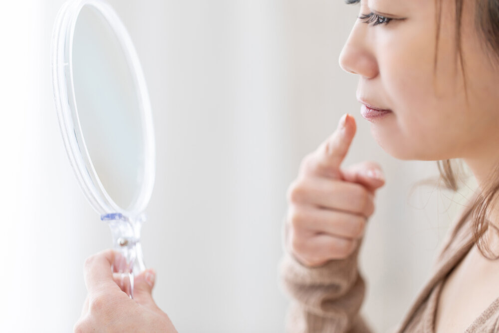 口唇炎と口角炎は、唇の乾燥や日焼けの他、ストレスなどによる免疫力の低下や、ビタミンB2、B6などの栄養不足、ヘルペスウイルスやカンジタ菌による感染症など、様々なことが原因となります。